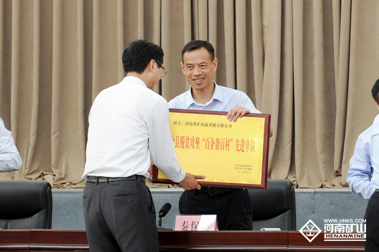 2018年5月9日下午,長垣縣召開“長垣縣脫貧攻堅第七次推進(jìn)會議”,會議表彰了在扶貧攻堅工作中做出突出貢獻(xiàn)的集體和個人,河南礦山獲得“全縣脫貧攻堅百企幫百村先進(jìn)單位”稱號。