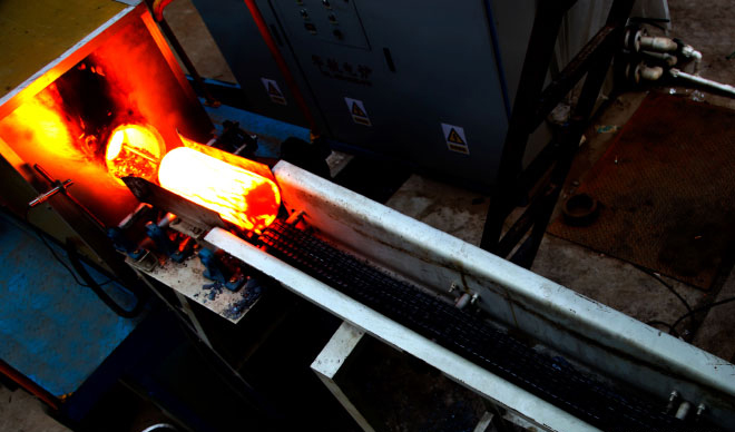該智能流水線將鍛壓和碾壓軋制工藝融為一體,從毛坯下料、上料、加熱、初鍛、碾壓成型到成品輸出,實現(xiàn)了自動化流水作業(yè)。它是我公司《起重機車輪碾壓成型新工藝裝備》、《起重機車輪鍛壓用新型加熱工藝裝備》等多項專利技術(shù)成果轉(zhuǎn)化為生產(chǎn)力的標(biāo)志。