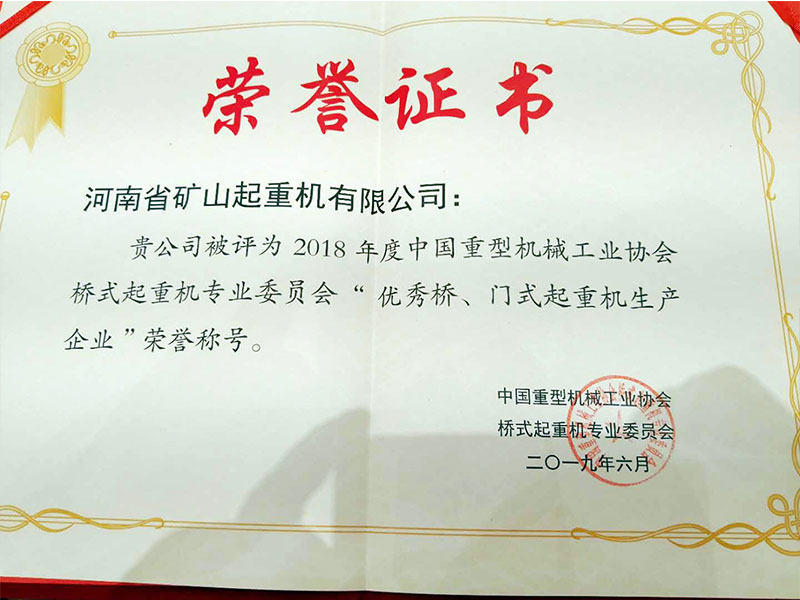 喜訊|河南礦山再次榮獲“門式起重機生產(chǎn)企業(yè)”榮譽稱號